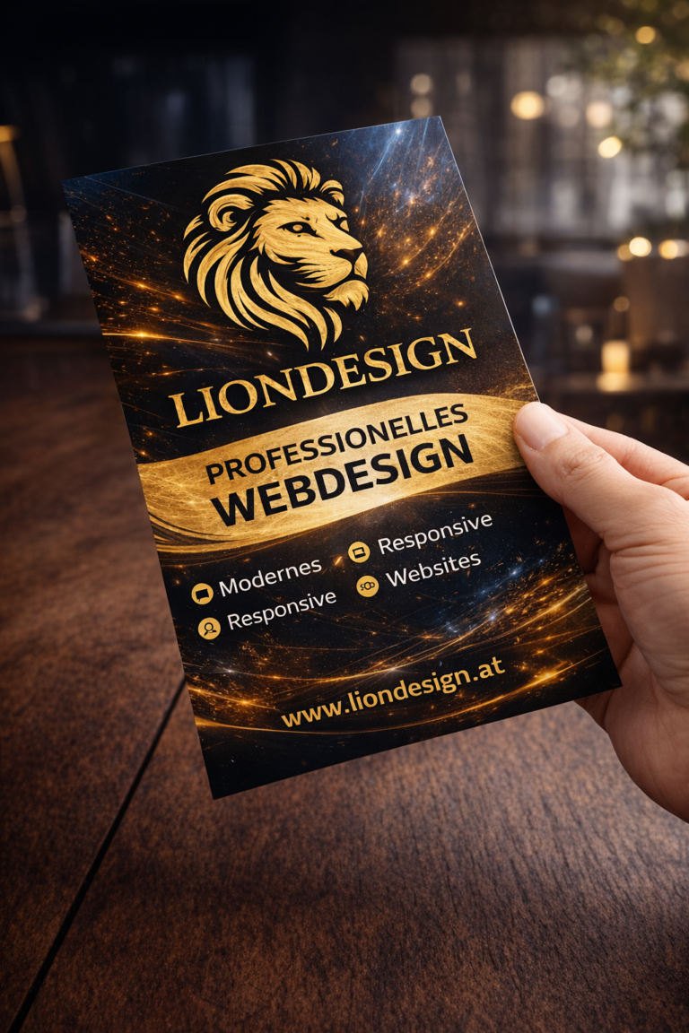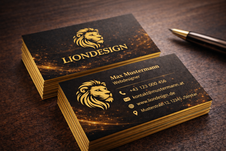 LIONDESIGN erstellt für dich einzigartige Visitenkarten, die dein Branding unterstreichen und Vertrauen aufbauen.